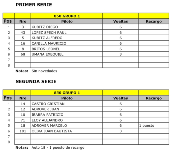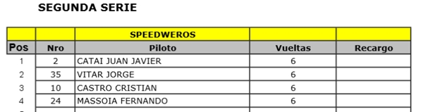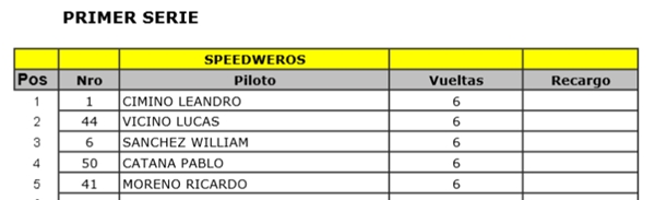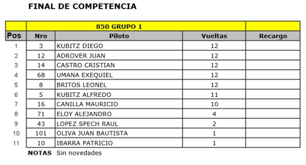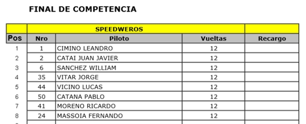 Resultados de la 1º fecha del Speedway El Santo 23/01/2017 / Speedway VUELCO DE PABLO CATANA El viernes pasado comenzó la temporada 2017 del Speedway El Santo, en el óvalo de Rodeo del Medio, donde resultaron ganadores Diego Kubitz y Leandro Cimino. No disponemos de resultados de motos. AUTOS 850 AUTOS SPEEDWAY