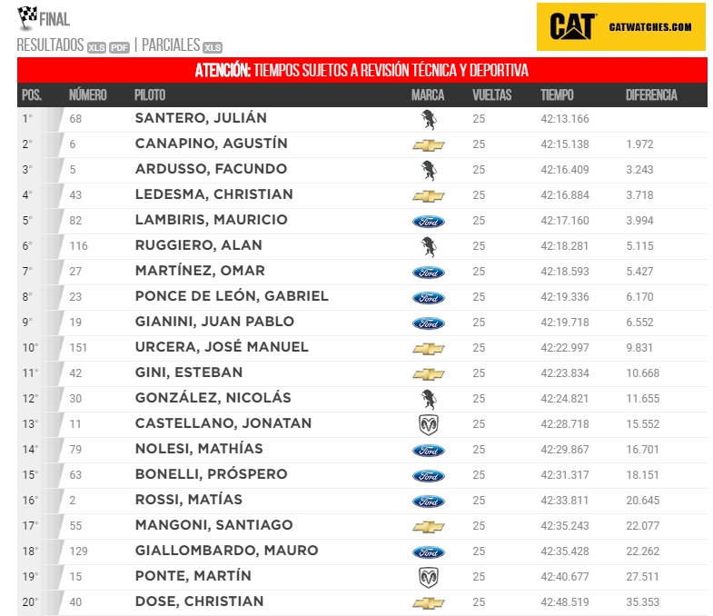 Tras largar desde los últimos lugares y habiendo avanzado 20 lugares, el poleman, Josito Di Palma debió ingresar a boxes a cambiar neumáticos, arribando al final en el puesto 25to.