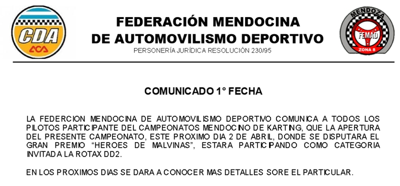 Hoy por la mañana se confirmó que la categoría Rotax DD2 formará parte de la programación de la primera fecha del Karting Mendocino, el próximo 2 de abril. Lo hará como categoría invitada, con intenciones de sumarse formalmente si la cantidad de pilotos es la suficiente para todo el año.