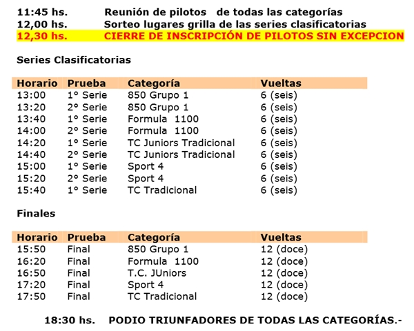 El pronóstico del tiempo indica lluvias para el fin de semana en San Carlos, donde el domingo se debe correr la segunda fecha de Categorías Tradicionales.