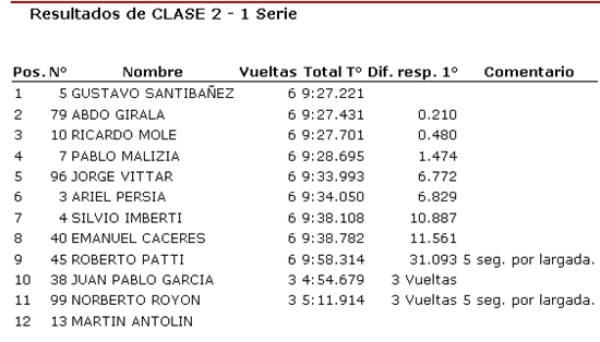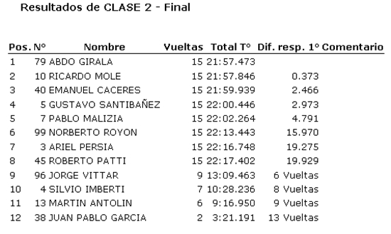 La Clase 2 estuvo muy buena. En pista se pasaron varias veces y sobre el final se generó un interesante mano a mano entre Abdo Girala y Caito Molé.