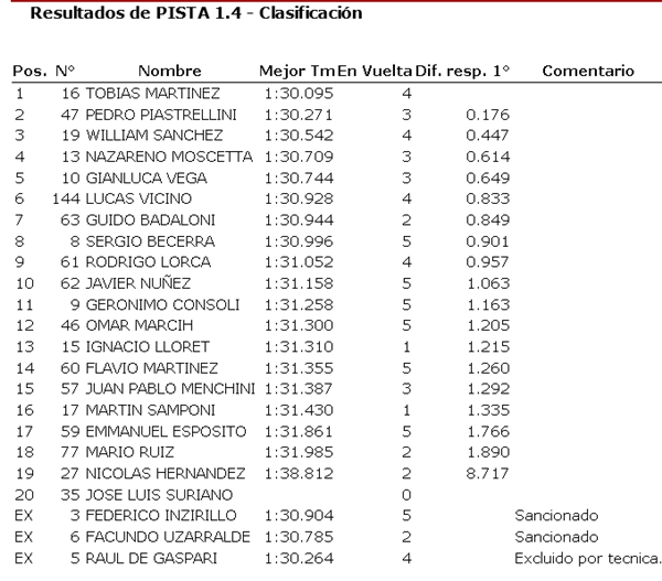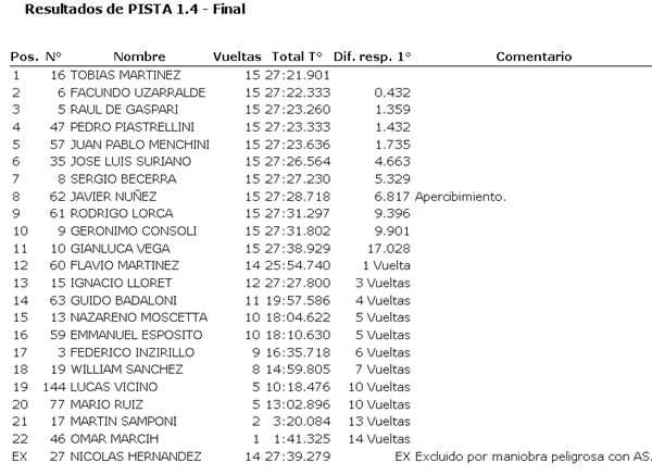 La final del TP 1.4 fue la que levantó el telón y el ganador fue el pibe de San Juan, Tobías Martínez. Pero para poder quedarse con la competencia tuvo que trabajar, tuvo que luchar y dejar detrás a pilotos importantes que hasta la meta lo presionaron buscando desbancarlo de ese lugar de privilegio. Facundo Uzarralde y Raúl De Gaspari ocuparon los restantes lugares del podio.