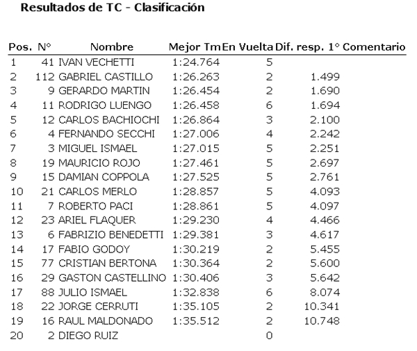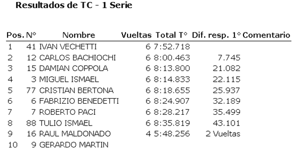Lo de Iván Vechetti (Ford) es no sólo para destacar si no que también para aplaudir. El Flaco de Rodeo de la Cruz compartió a primera fila con Rodrigo Luengo (Fairlane), largaron muy bien los dos pero en el ingreso a la segunda curva se rozaron y los dos perdieron mucho terreno.