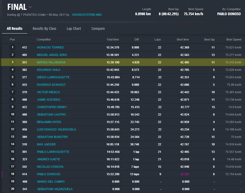 El mendocino Matías Villanueva tuvo un fin de semana ideal en la sexta fecha del campeonato Rotax Chile que se disputó en el circuito 7 puentes de la ciudad de Rancagua. Con su chasis CRG ganó serie y final.