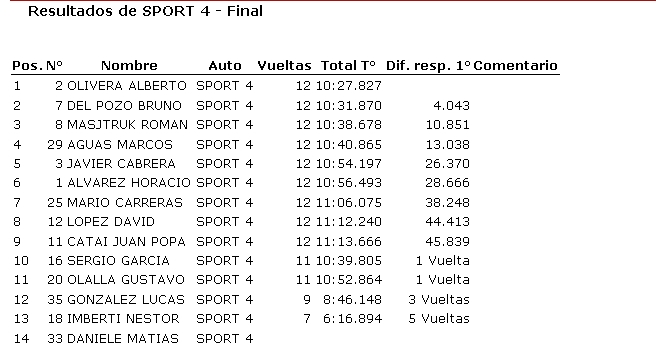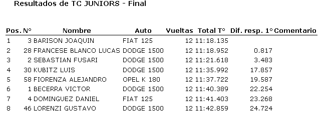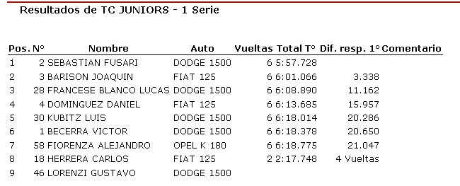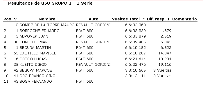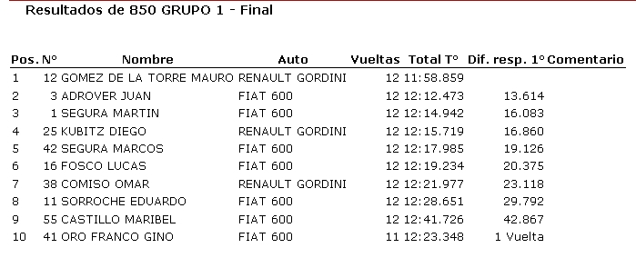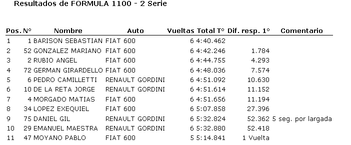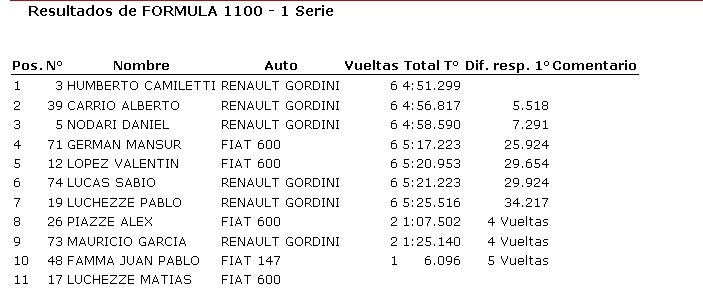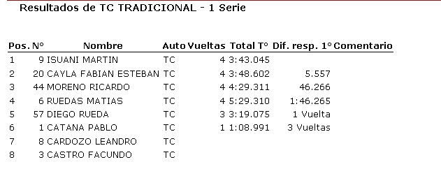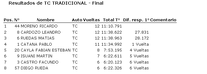 Ayer se disputó en el autódromo Víctor García una nueva fecha de Categorías Tradicionales, donde resultaron ganadores Mauro Gómez de la Torre (850), Humberto Camiletti (Fórmula 1100), Joaquín Barisón (TC Júnior), Ricardo Moreno (TC Tradicional) y Alberto Olivera (Sport 4).