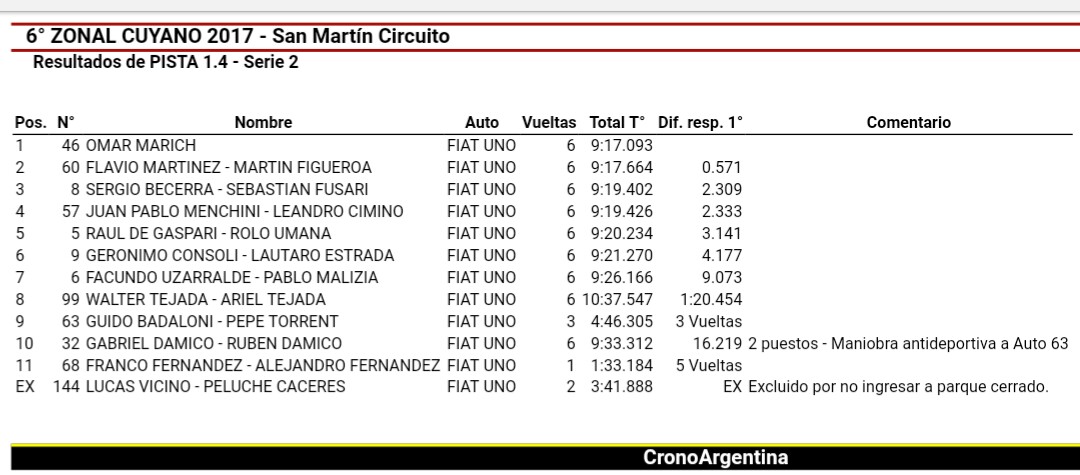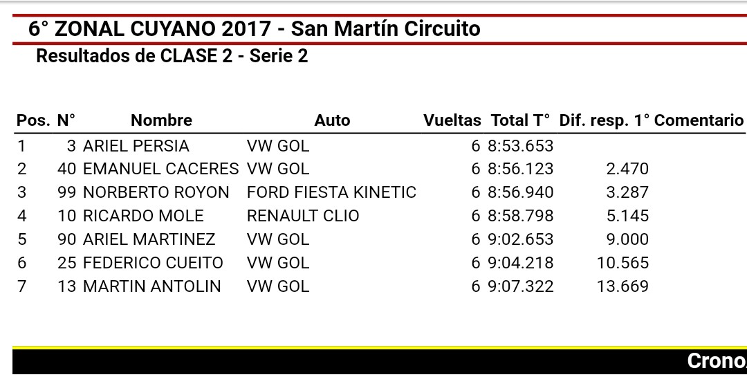 Diego Ruiz tuvo una serie excelente y ganó con más de 2 segundos de diferencia. Gerardo Martín sigue cosechando puntos, aunque esta carrera fue más ajustada.