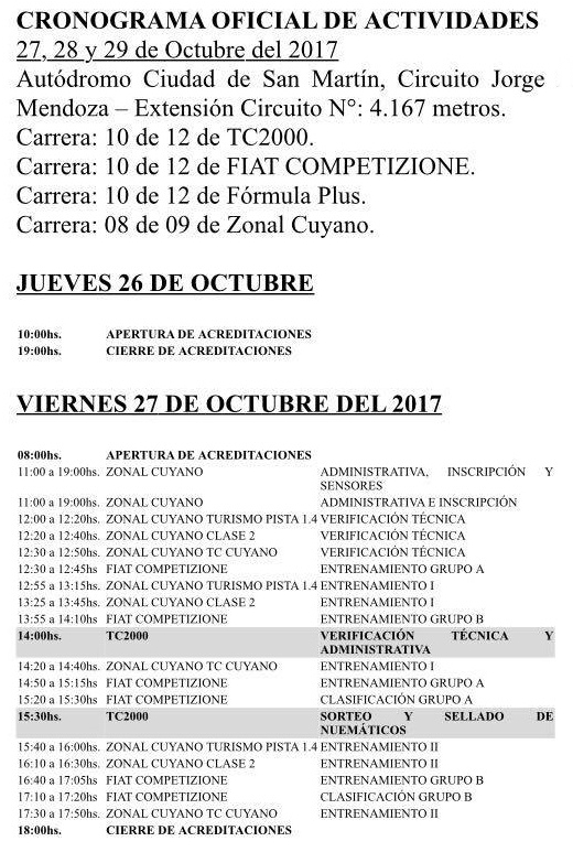 Se dieron a conocer oficialmente como serán los horarios para el próximo fin de semana donde el autódromo de San Martín será el escenario para una fecha importante, especial y esperada.