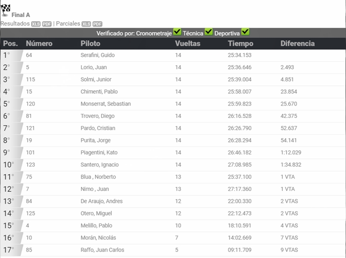 Guido Serafini se coronó campeón, mientras que Santero (solo con algunas carreras) quedó 16º en el campeonato, entre 45 rankeados.