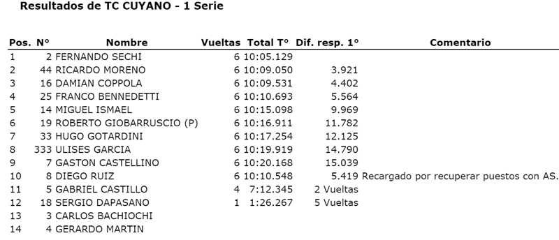 Mañana domingo la actividad comenzará temprano. Desde las 11 horas se iniciaran las 4 finales: Turismo Pista 1.4, Clase 2, TC Cuyano y Promocional Fiat, que cerrará el espectáculo.