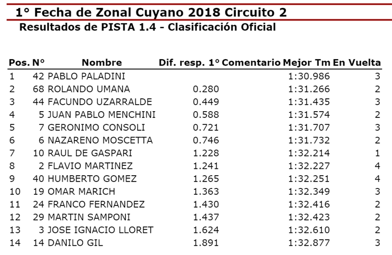 Por lo pronto, hoy sábado hubo entrenamientos, 3 clasificaciones y 2 series (1.4 y TC) ya que pilotos junto con dirigentes de la Clase 2 decidieron no correr la serie e ir directamente a la final.