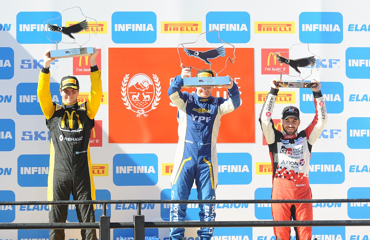 Julián Santero: “Estoy muy feliz de lograr mi primer podio con el equipo Toyota Gazoo Racing Argentina, igualando mi mejor resultado en esta categoría tan linda, en tan sólo cuatro carreras en nuestro retorno. Esto es el resultado de todo el gran trabajo que estamos haciendo juntos con el equipo desde la primera fecha de este año, donde venimos progresando carrera tras carrera con una adaptación cada vez mejor. Este fin de semana pudimos plasmarlo en pista durante todo momento, manteniendo en la largada de la final el tercer puesto y cuidando los neumáticos en las primeras vueltas, sabiendo que podía haber un pace car. Después del auto de seguridad exprimimos el auto al cien por ciento a ver si podíamos hacer que Moggia se equivocara, y en algún momento estuvimos cerca pero luego empezó a redondear vueltas y nos hizo una diferencia, por lo que tuve que conformarme con este gran tercer puesto. Sumamos bie, crecimos en el campeonato, y ahora se abre un panorama muy alentador para lo que viene. Aún queda mucho camino por recorrer en el año y siento que estamos alcanzando rápido el rendimiento que queremos”.