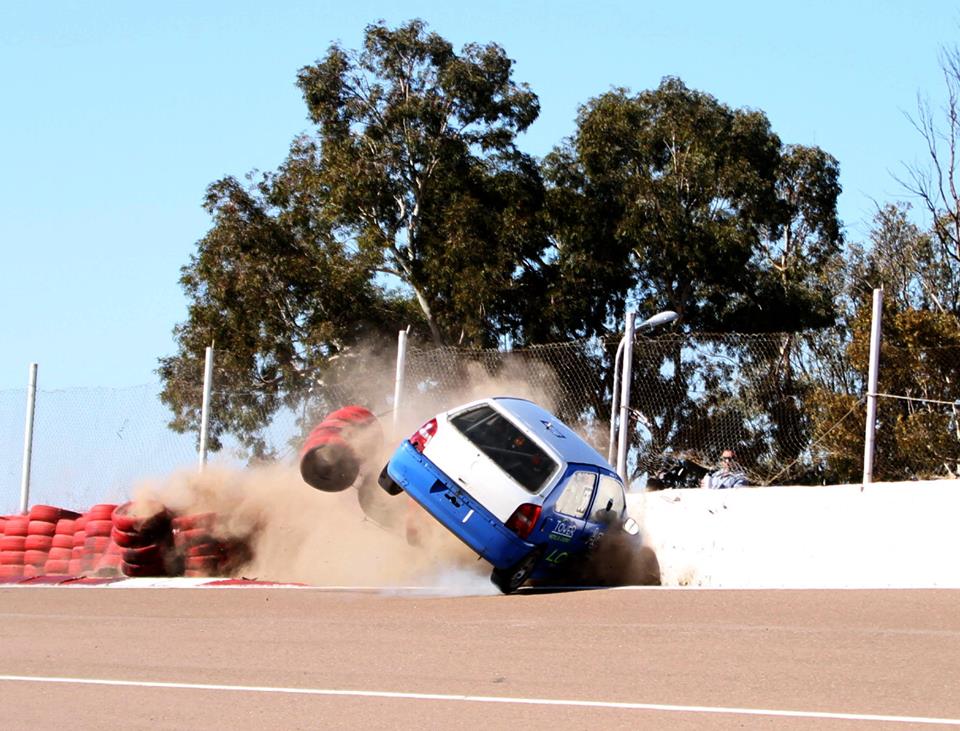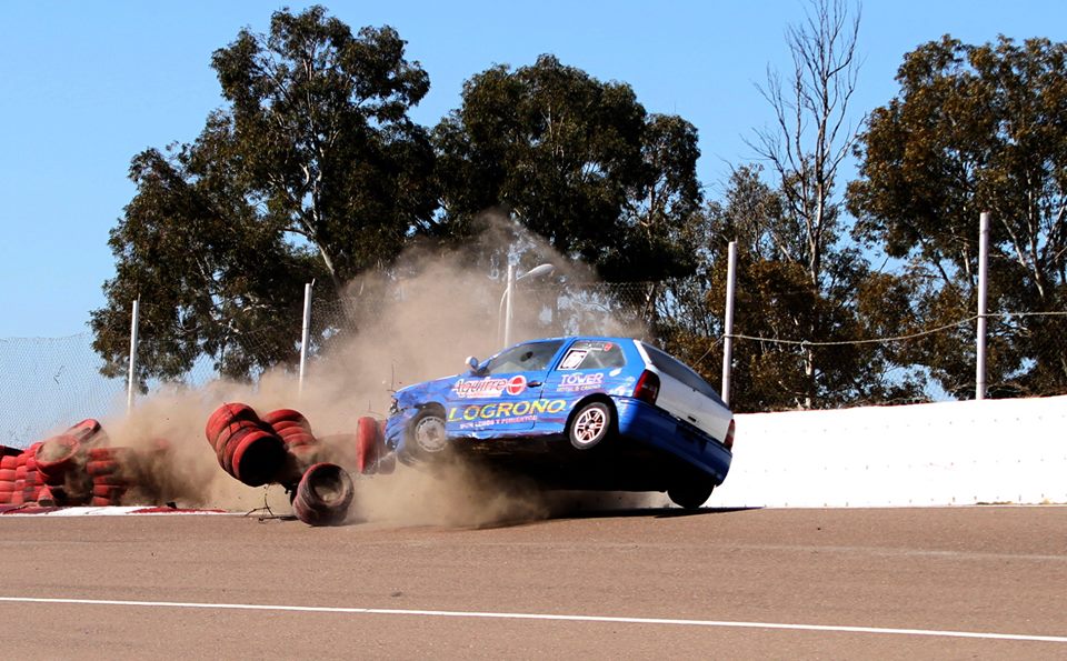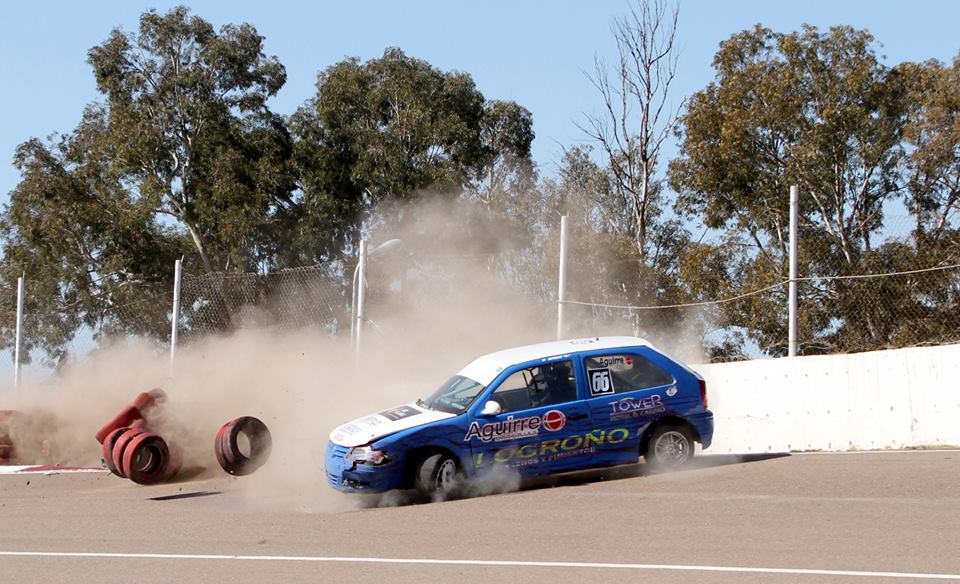 El sanrafaelino Martín Antolín sufrió hoy un fuerte golpe en la salida de la chicana del autódromo de San Martín, a bordo del Gol de la Clase 2 del Zonal Cuyano. El piloto salió ileso.