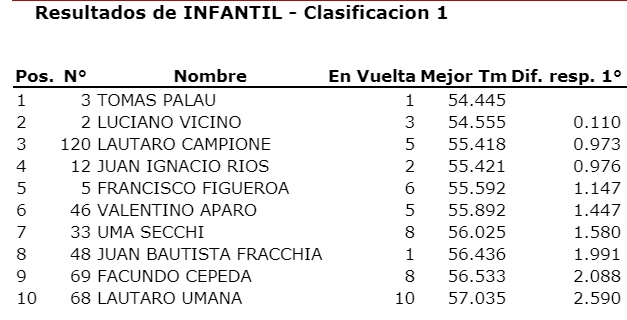 Con esto, solo quedaban en esta fecha Tejada y Bocelli, que tampoco se presentaron ya que eligieron probar un motor de 4 tiempos más potente que el usado en la Infantil, siempre a modo de exhibición.
