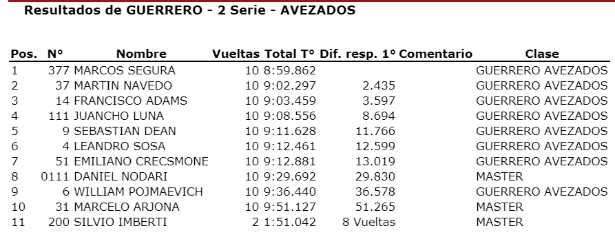 ☑ Resultados – Vuelta por Vuelta