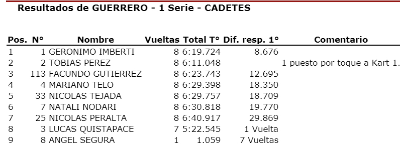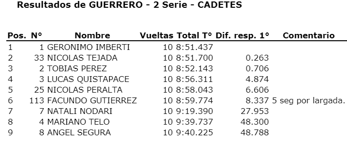Entretenida fecha brindaron los Cadetes de la “Guerrero 150” que cada vez están más parejos en lo que a manejo se refiere, ya que los motores son sorteados al inicio de cada cita.