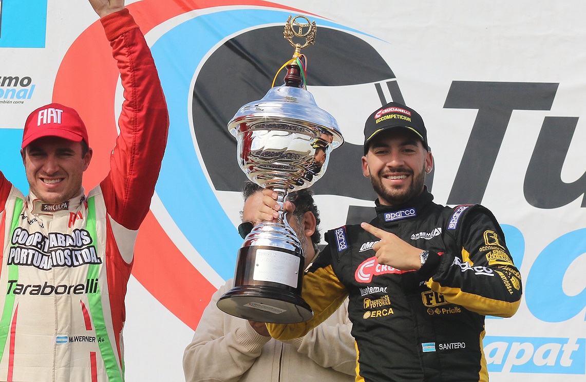 Luego de un gran avance que le permitió en principio ganar la serie, Julián Santero luego se dio el gusto de llegar en el último giro a su primer triunfo del año dentro de la Clase 3 del Turismo Nacional, que en el autódromo de la ciudad de Toay en La Pampa disputó su 8va fecha del año. Así, el mendocino consigue la victoria necesaria para poder pelear firme por el campeonato, en el cual se prendió definitivamente.