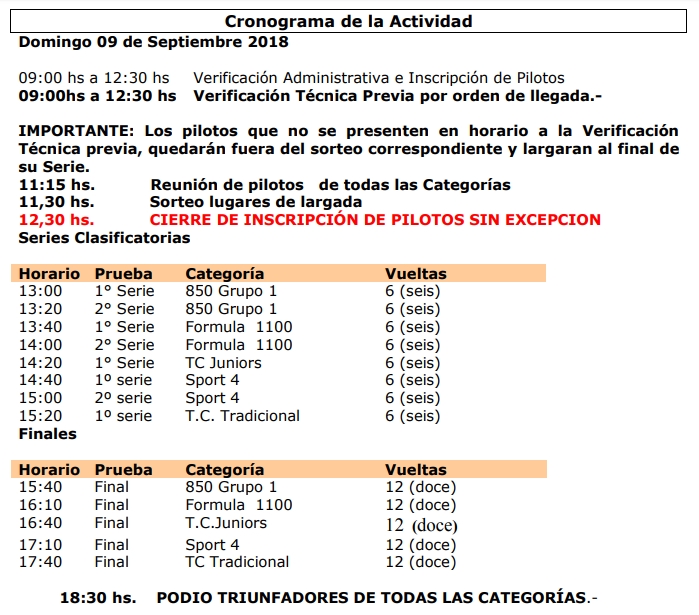 Horarios para la 7º de Tradicionales en el Guido Maineri