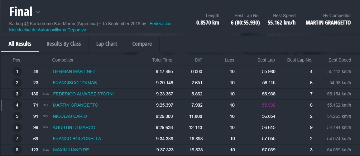Este domingo se realizó la 5º fecha del Campeonto Mendocino de Karting, que se denominó GP 6º Aniversario del Kartódromo de San Martín.