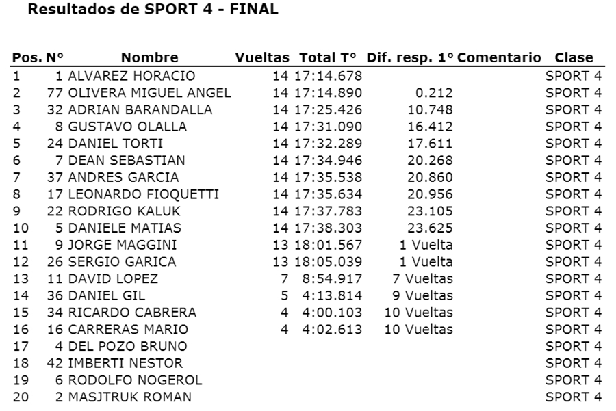 Se destacó el gran parque de 20 máquinas que presentó el Sport 4, donde ganó “Gorrita” Alvarez (General Alvear).