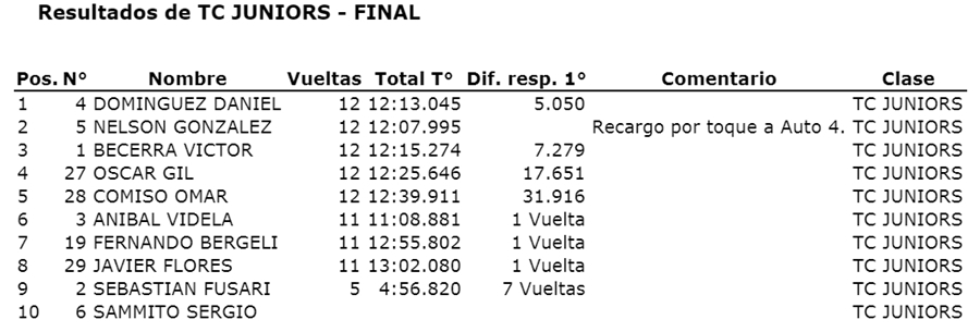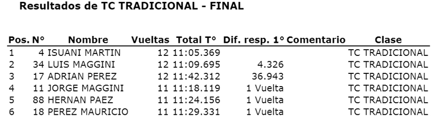 Fernando Sosa (San Martín) consiguió su segundo triunfo consecutivo y Mariano González (Mendoza) ganó en la abultada Fórmula 1100 que tuvo 21 participantes. En el TC Junior ganó Daniel Domínguez (Rivadavia), mientras que Martín Isuani (Guaymallén) hizo lo propio en TC Tradicional.