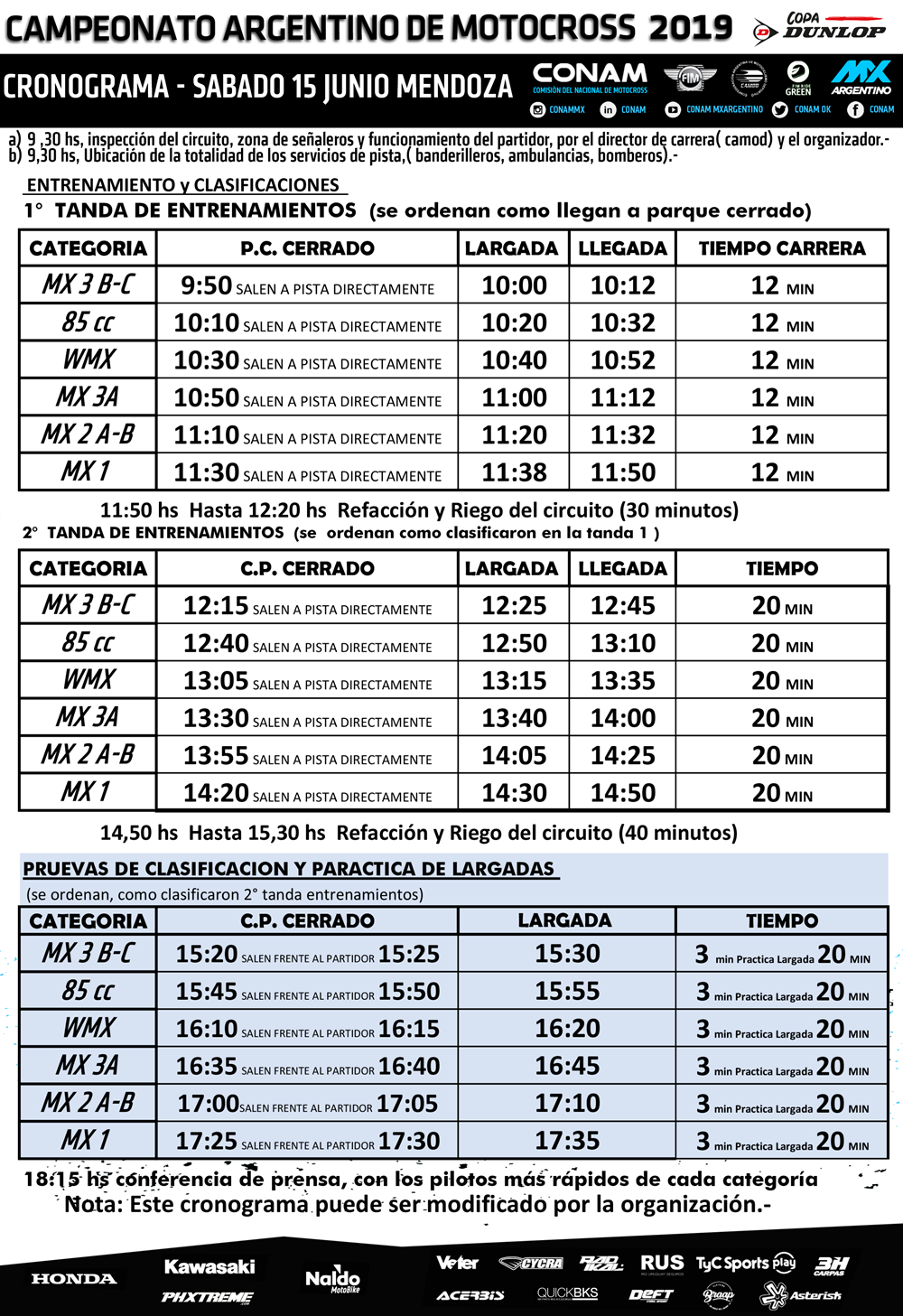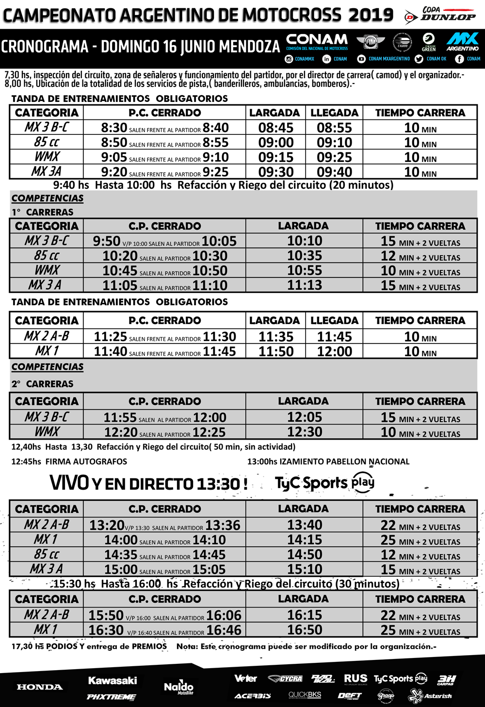 Recordemos que el sábado serán los entrenamientos y clasificaciones, mientras que el domingo se concretarán las competencias, con transmisión en vivo a través de la plataforma digital de TyC Sports Play.