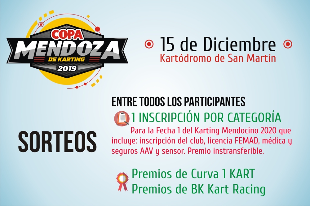 El fin de semana del 14 y 15 de diciembre se realizará una nueva edición de la COPA MENDOZA de Karting, competencia que se realizará en el Kartódromo de San Martín con pilotos de varias provincias y visitas de Chile.