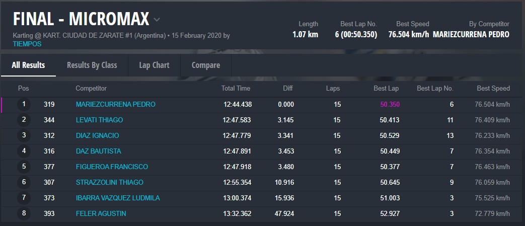 Figueroa corrió bajo la estructura del equipo Zaffaroni Kart y fue 5° en la final de la categoría Micro Max. “Fran” había clasificado 6° y llegado 5° en la única serie.