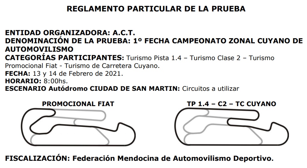 Ya se conocen el RPP y horarios para la fecha apertura del Zonal Cuyano, que se realizará este fin de semana en el Autódromo Ciudad de San Martín.