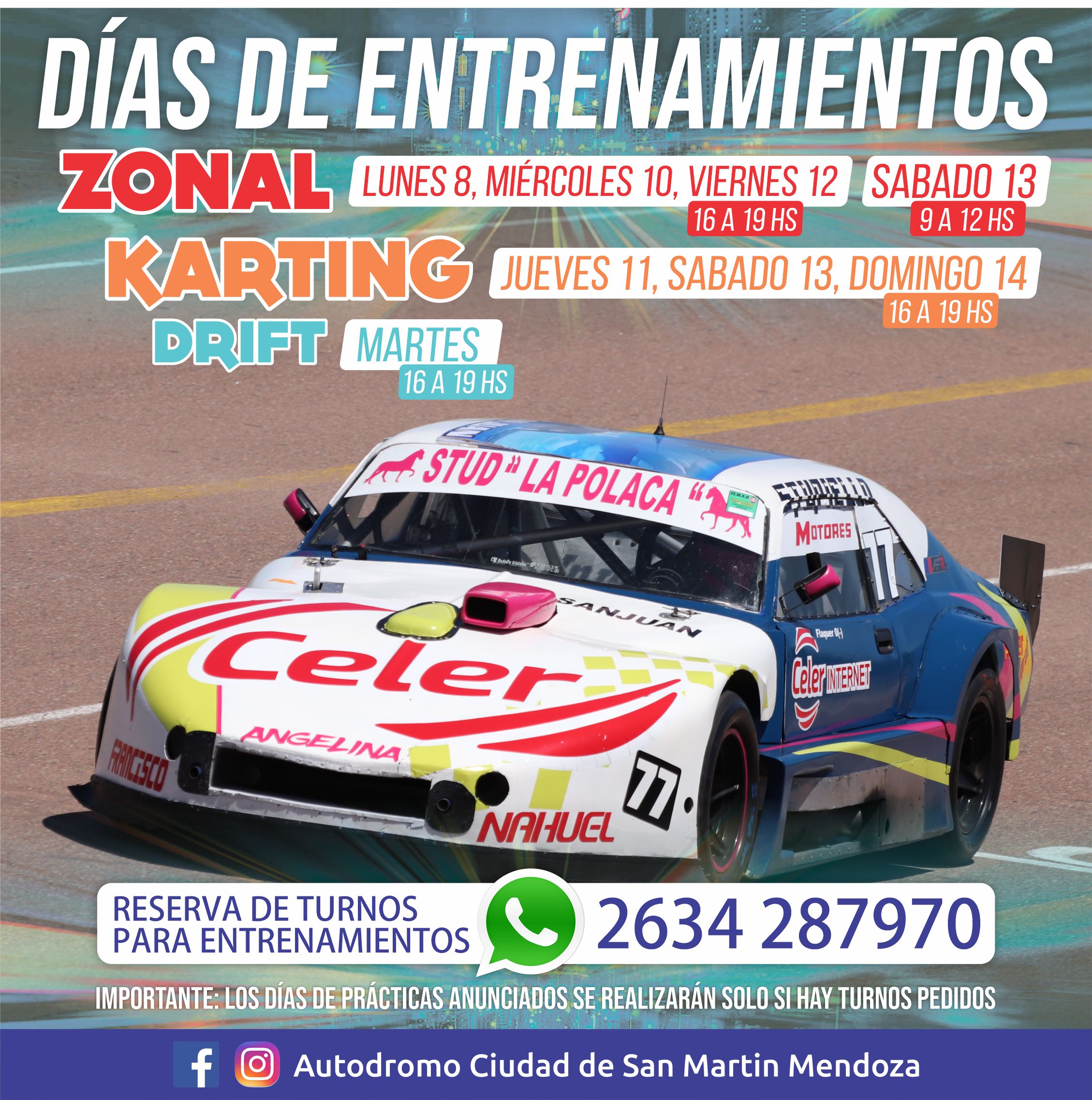 CRONOGRAMA de entrenamientos para la semana del 8 al 14 de marzo en el Autódromo y Kartódromo de San Martín.