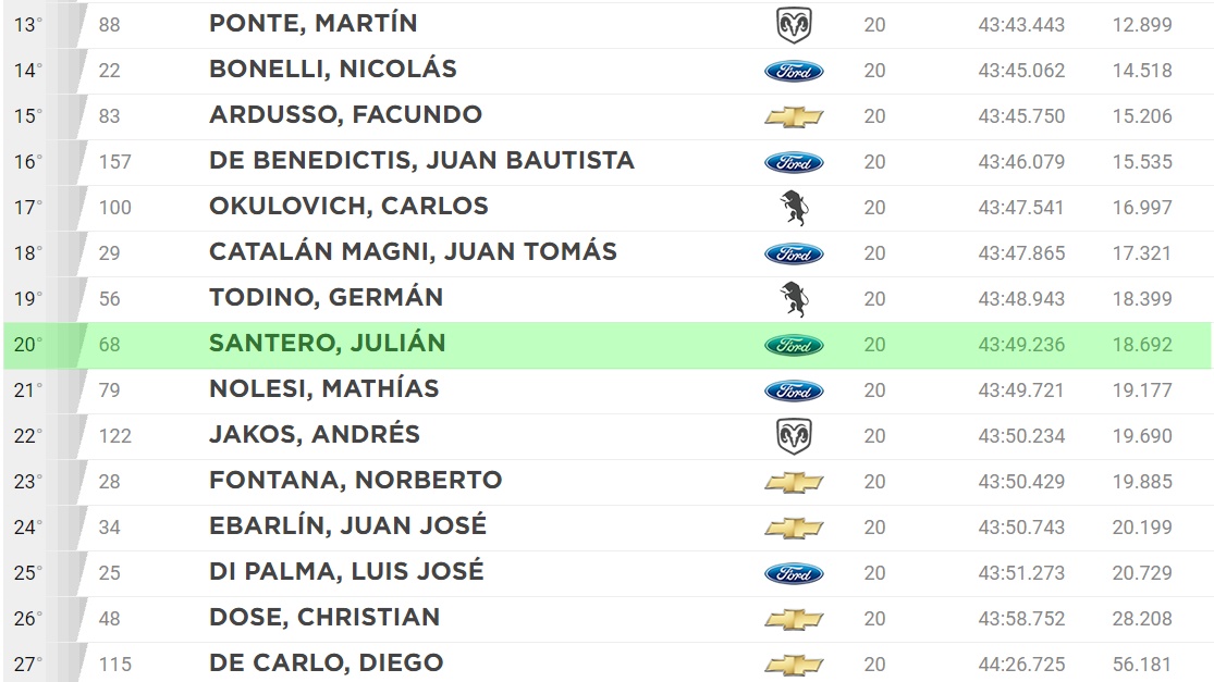 El mendocino JULIÁN SANTERO marco la pole position ayer e iba ganando su serie, hasta que sufrió la rotura de la caja. En la carrera final avanzó hasta la posición 20° con el Ford que el entrega el equipo Memo Corse.