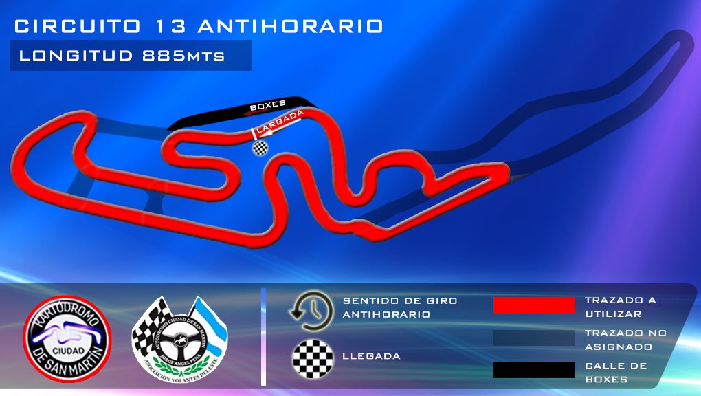 La próxima fecha del Karting Mendocino de asfalto estrenará el circuito 13 “anti horario” del Kartódromo de San Martín, que cuenta con una extensión de 885 metros.