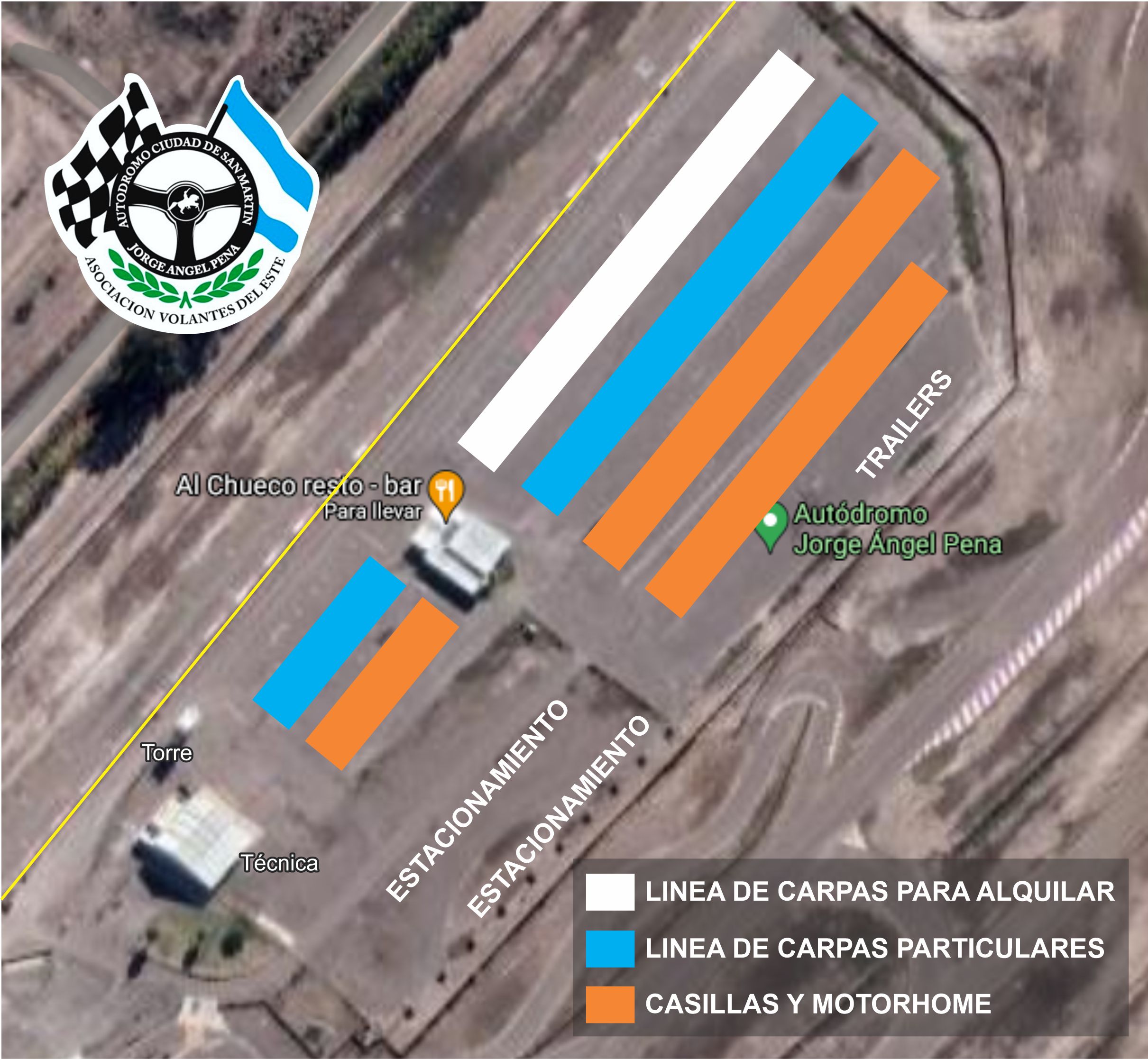 Se armará la clásica línea de carpas blancas para alquilar y se dispondrá una segunda línea para carpas particulares, en las que solo deberá estar el auto de competición y, a lo sumo, un auto de asistencia.