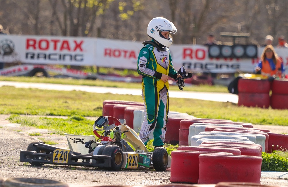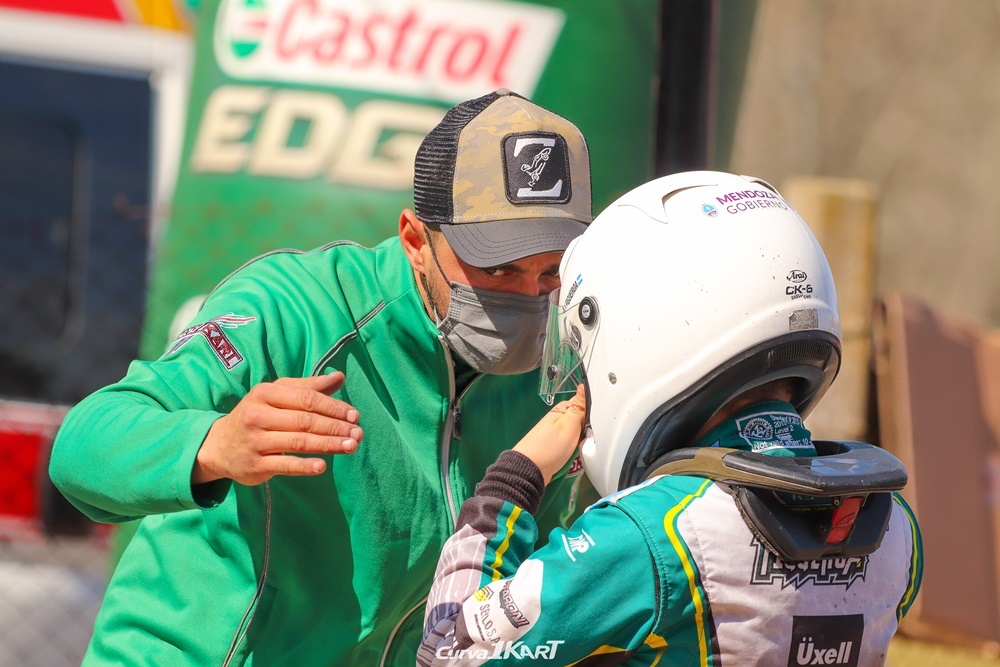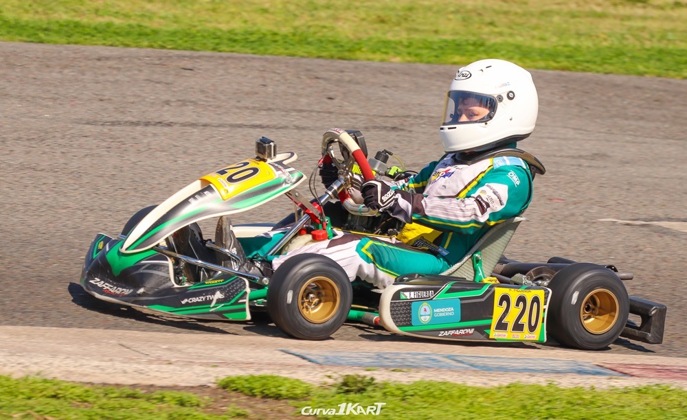 El piloto mendocino de 11 años entrenó el viernes y el sábado salió a clasificar donde quedó 5° entre los 8 participantes de la categoría Mini Max. En la primera manga tuvo una largada excelente, quedando segundo y marchando en esta posición un par de vuelta, hasta que fue perdiendo terreno y quedó 6°. En la segunda abandonó.