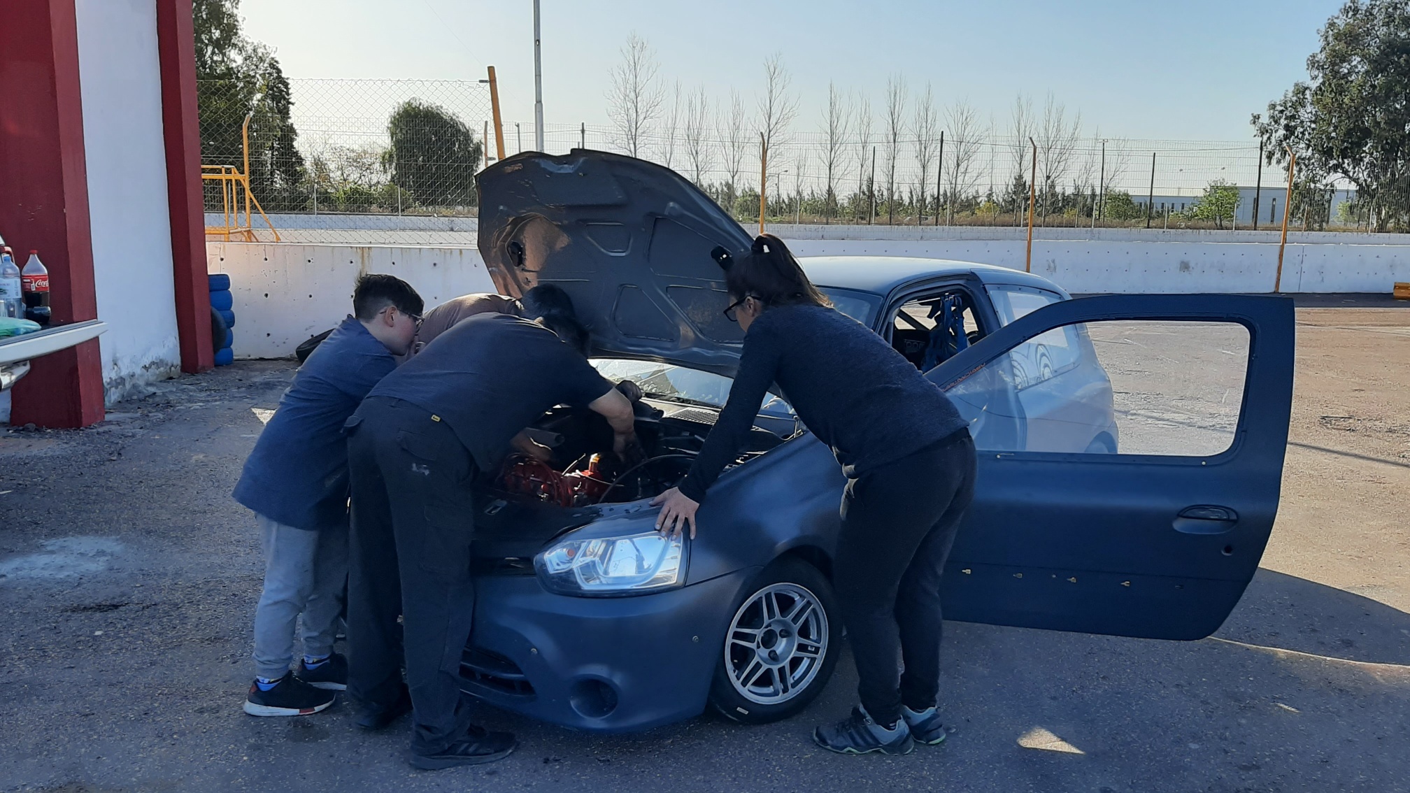 El sanjuanino Emmanuel Espósito entrenó en su Fiat 147 dónde trabajó en el chasis con asesoramiento de Malizia.