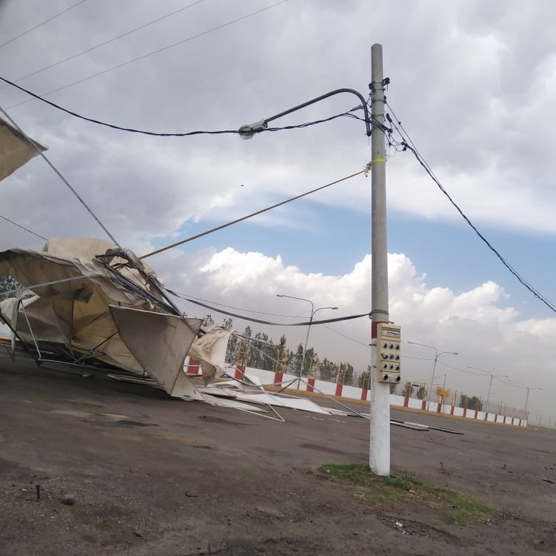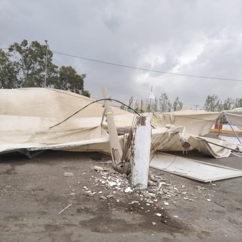Las estructuras se ataron a los postes de luz pero el viento fue más fuerte y excluyó tanto la estructura como arrancó los postes de cemento.