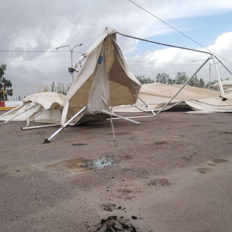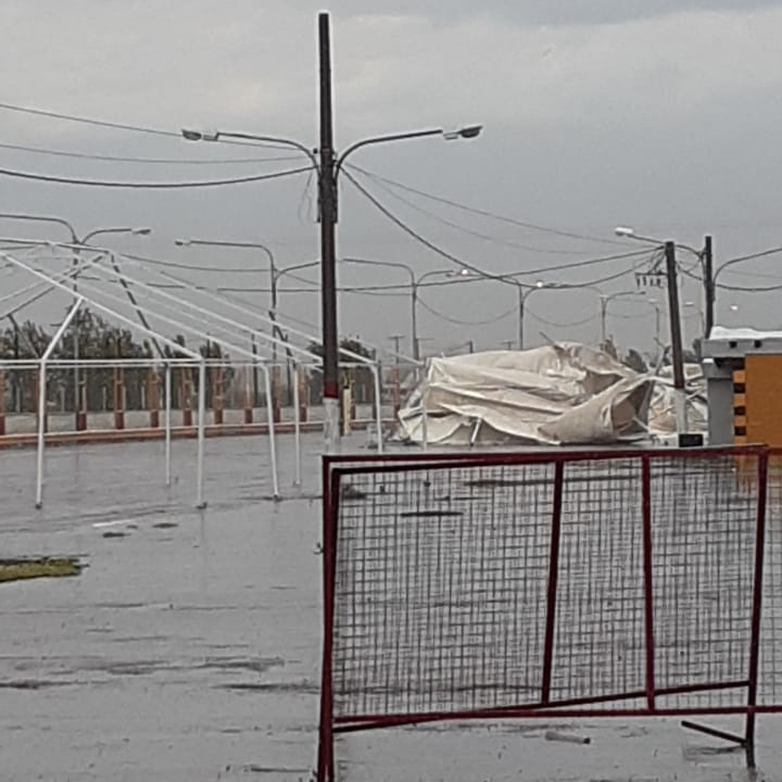Pasadas Las 17 horas de este miércoles se registró una fuerte temporal en San Martín, con un fuerte viento lluvia y granizo en varios sectores qué daño notoriamente la estructura y las carpas utilizadas el domingo pasado en la zonal cuyano.