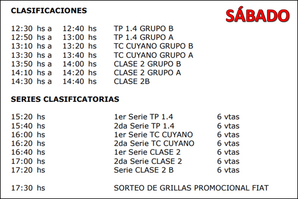 Horarios para el 6° capítulo que se corre este finde en el Autódromo de San Martín y se denomina GP BONARDA.