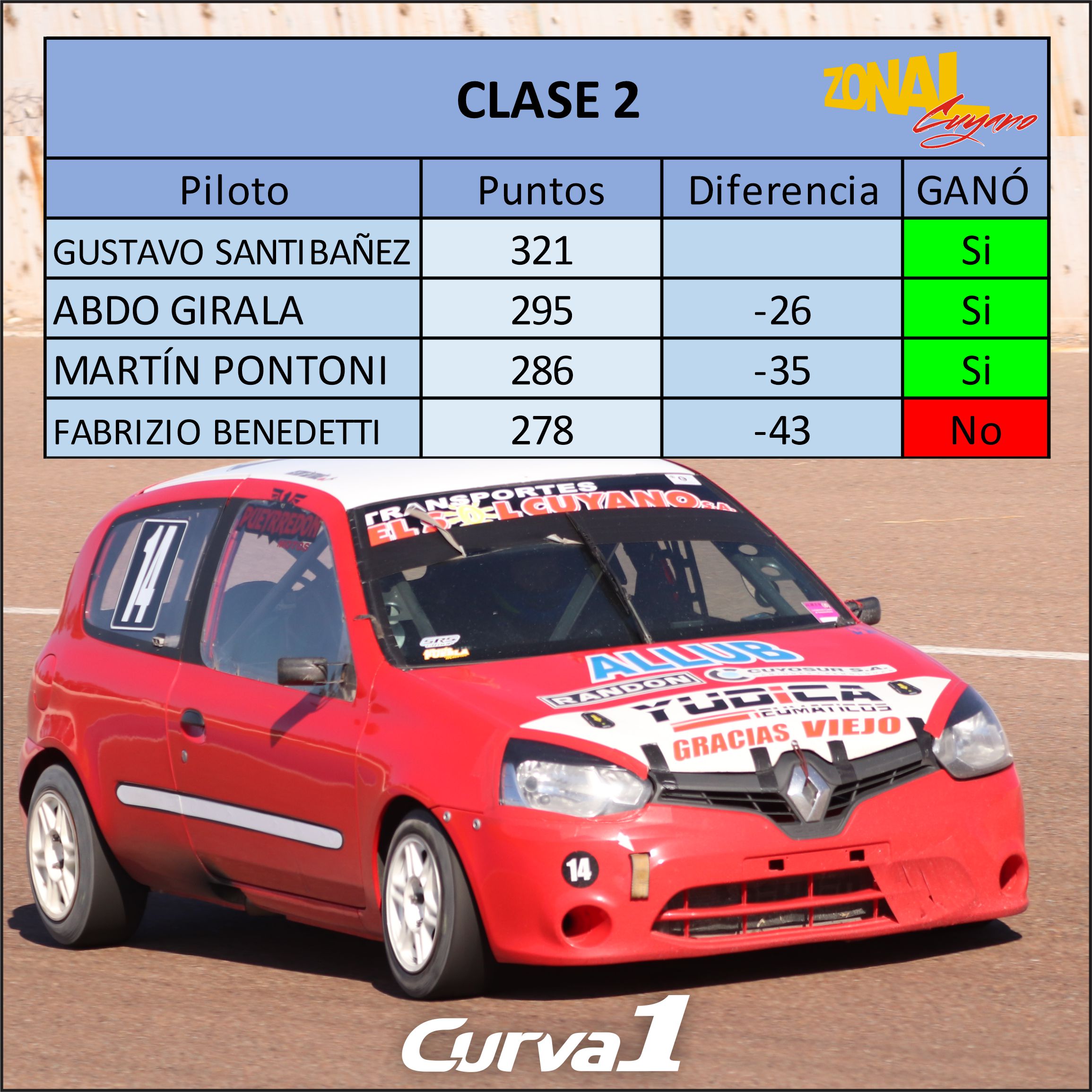 🔹Hay 57 puntos en juego para TC Cuyano, Clase 2, Clase 2 B y TP 1.4.