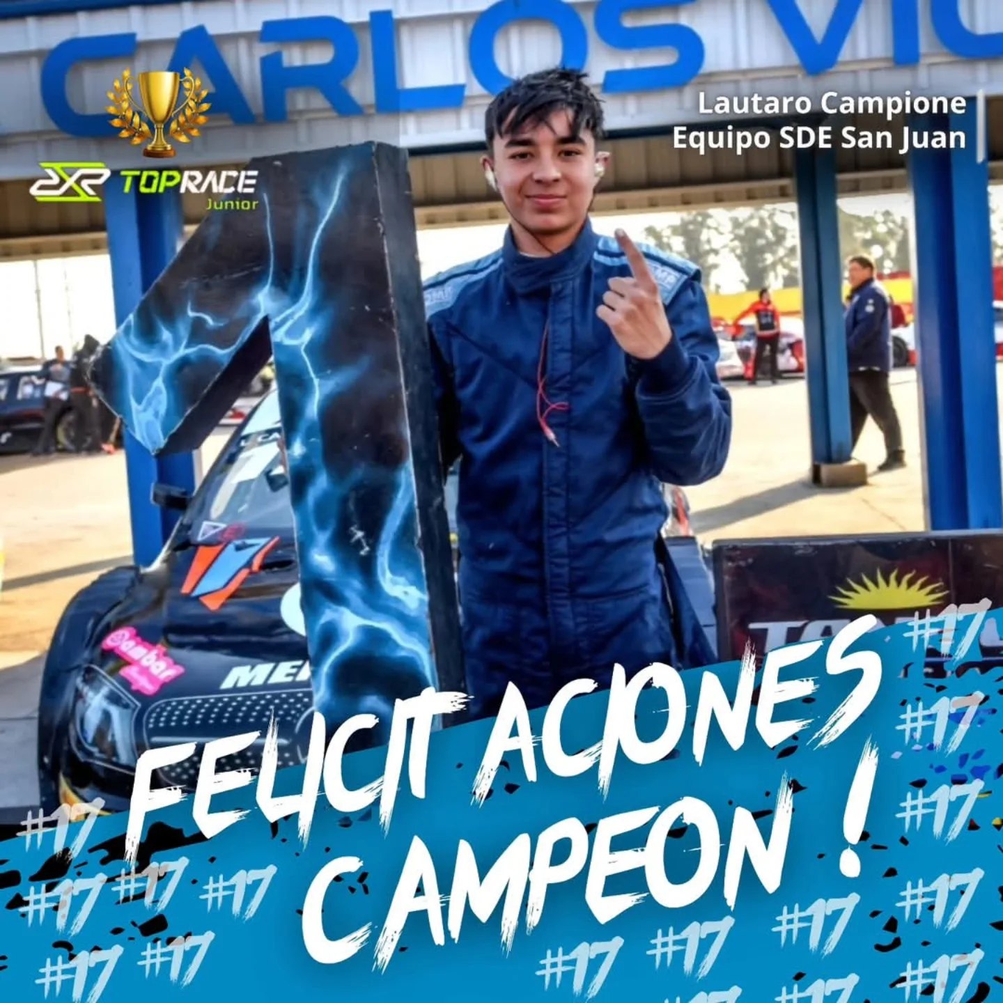 El piloto de Las Heras LAUTARO CAMPIONE ganó este domingo la última fecha para gritar “Campeón” del Top Race Junior y lograr su primer título nacional.