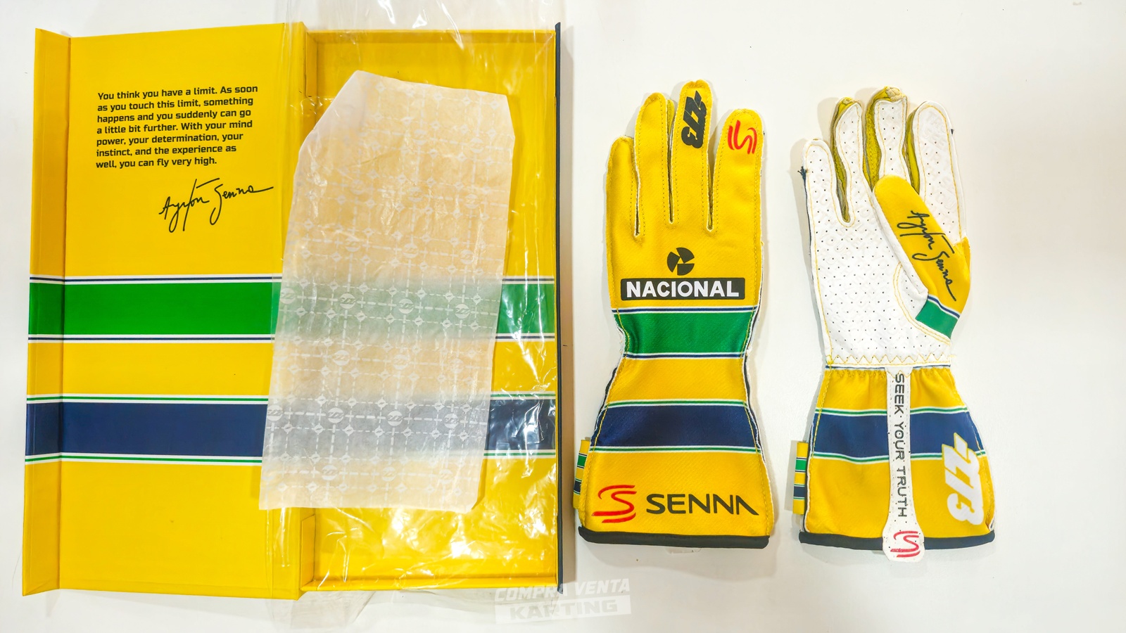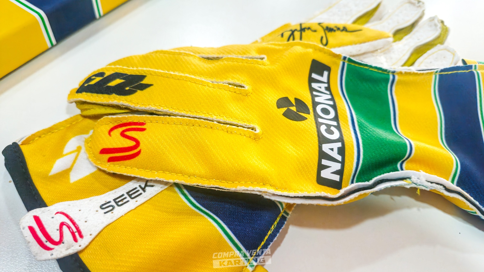 VENDIDO guantes para karting marca Minus -273 tributo “Ayrton Senna” talle S (único talle).