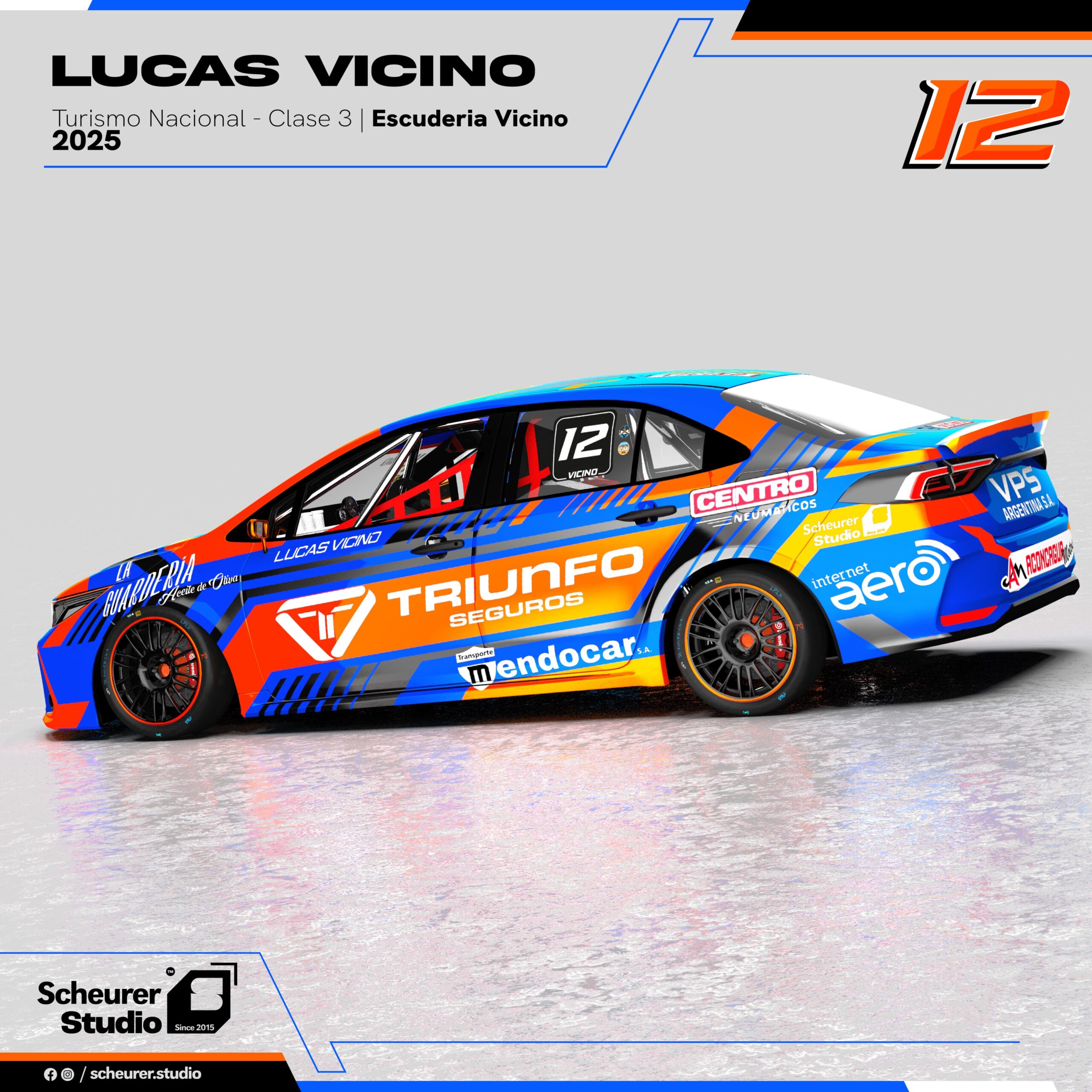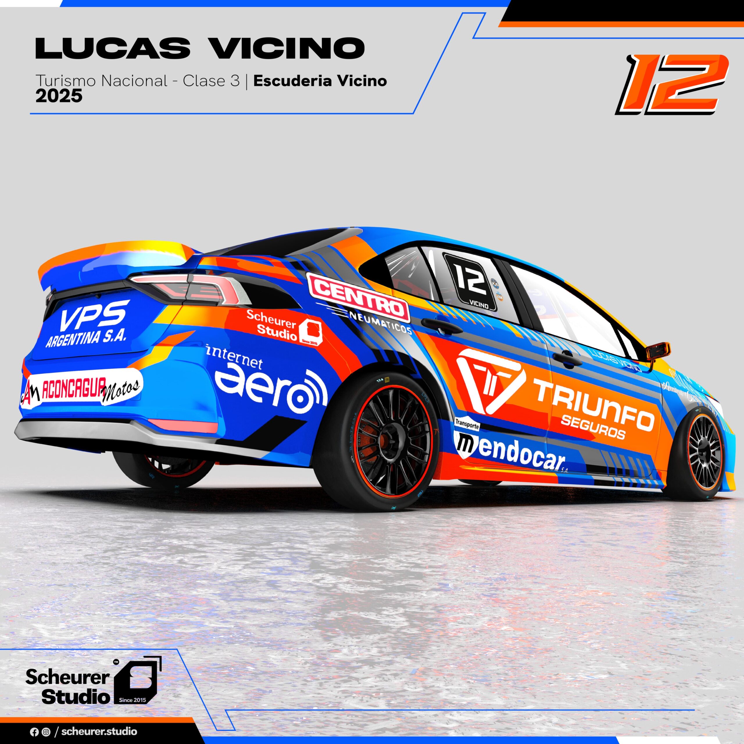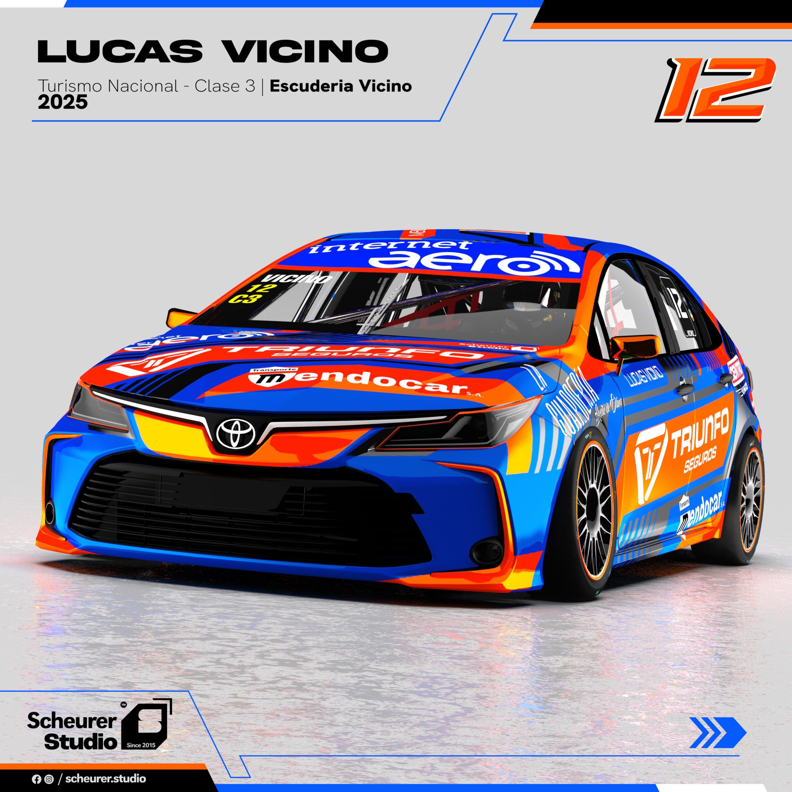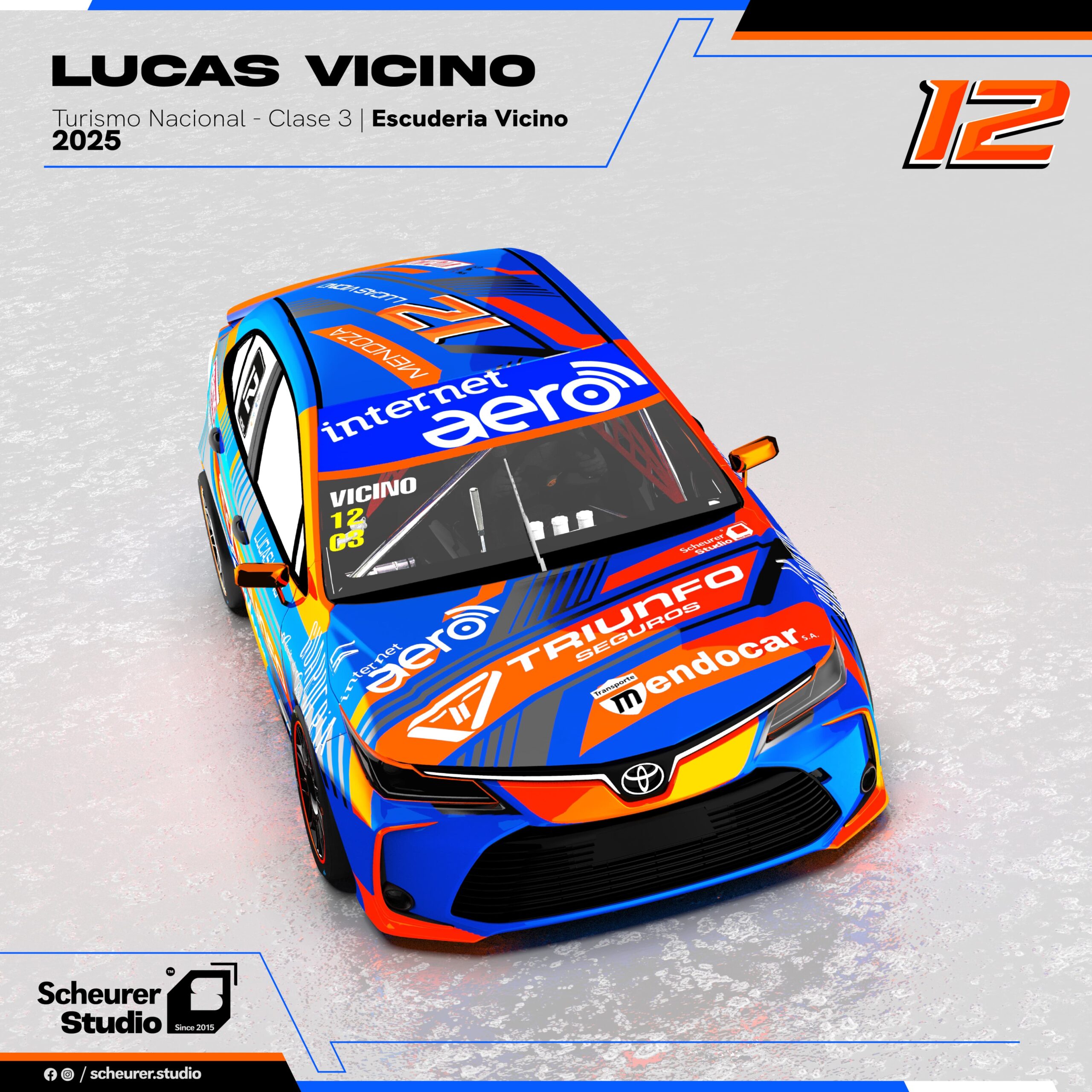 Lucas Vicino presentó su nuevo diseño para el TN 17/02/2025 / Nacionales El maipucino Lucas Vicino comenzará el próximo finde una nueva temporada en la Clase 3 del TN y presentó en redes el diseño de su Toyota Corolla. Escudería Vicino viajará esta semana al Autódromo Ciudad de Paraná para la primera fecha del TN.