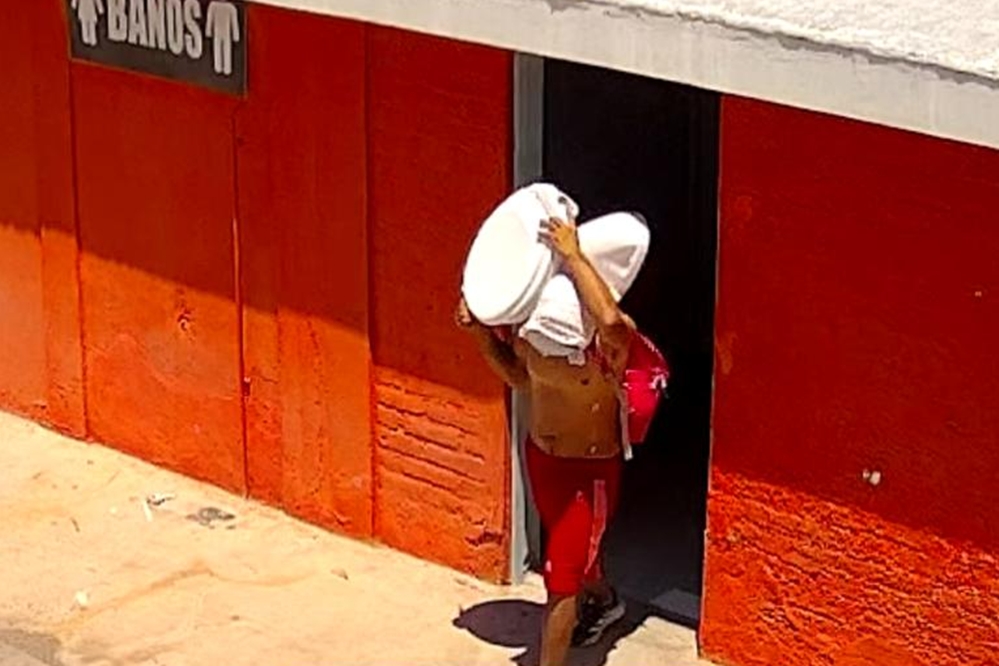 Un delincuente irrumpió en cuerpo de baños y se llevó varios objetos, incluyendo inodoros, un reflector del restaurante Al Chueco y una bomba de agua.